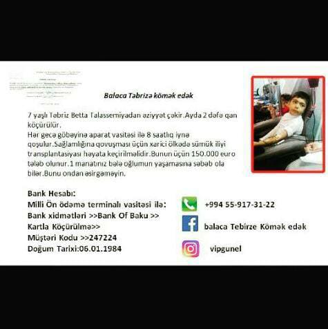 Təbrizin valideynlərinin Azərbaycan xalqından, imkanlı ve xeyirxah insanlardan bircə təvəqqəsi var ki, onun yaşaması üçün əllərindən gələni əsirgəməsinlər.