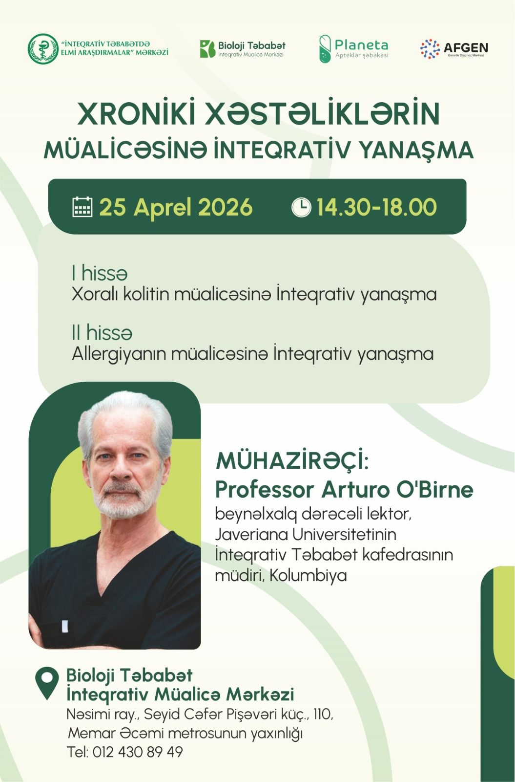Medicina.az xəbər verir ki, 25 aprel 2026-cı il tarixində “Xroniki xəstəliklərin müalicəsinə inteqrativ yanaşma” mövzusunda seminar keçiriləcək.