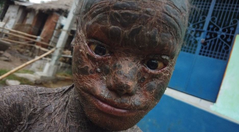Medicina.az xəbər verir ki, Hindistanın Orissa ştatında yaşayan oğlan 600 min insanda bir rast gəlinən Lamelyar ixtioz sindromundan əziyyət çəkir.