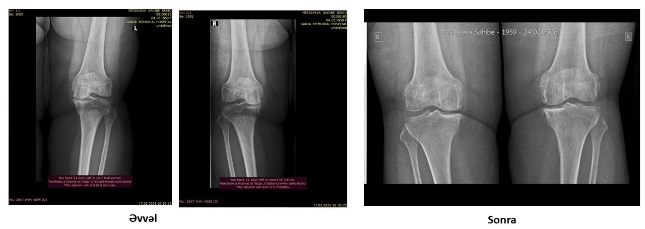 Bioloji Təbabət İnteqrativ Müalicə Mərkəzinə müraciət edən pasiyentə 4-cü dərəcəli artroz diaqnozu qoyulmuşdu.