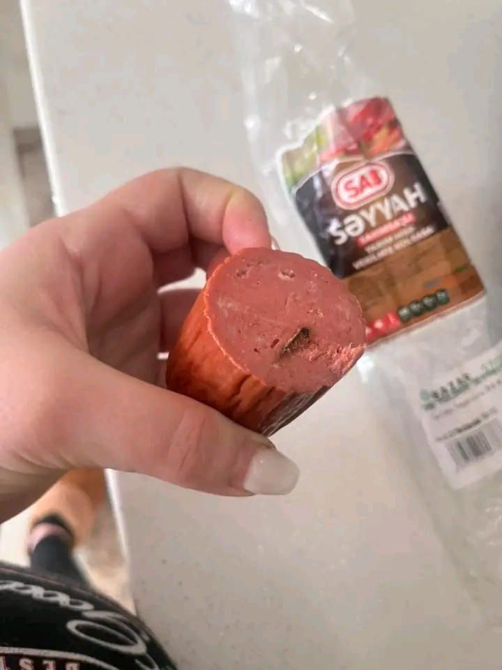 Belə ki, o, səhər yeməyi üçün kəsdiyi kolbasanın içində dəmir parçası aşkar etdiyini bildirib.