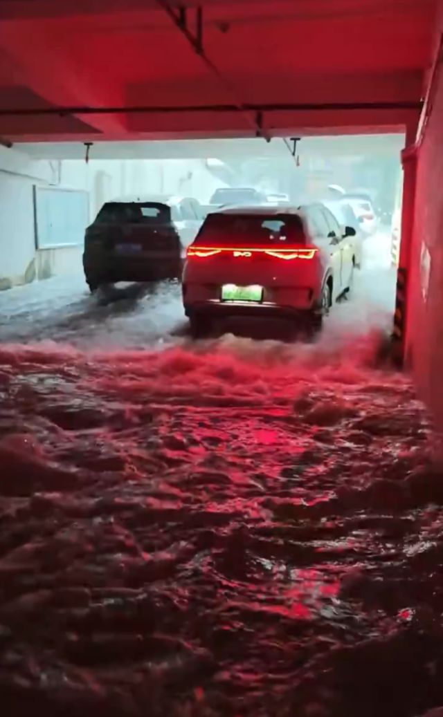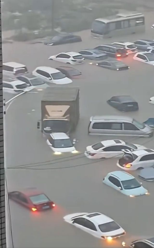 Güclü yağışdan sonra Qinzhou küçələrini örtən suyun səviyyəsi park edilmiş nəqliyyat vasitələrinin damlarına çatıb. Ərazidə nəqliyyat tamamilə iflic olub və yüzlərlə nəqliyyat vasitəsi su altında qalaraq istifadəyə yararsız hala düşüb. Daşqından xüsusilə yeraltı keçidlər və dayanacaqlar təsirlənib.